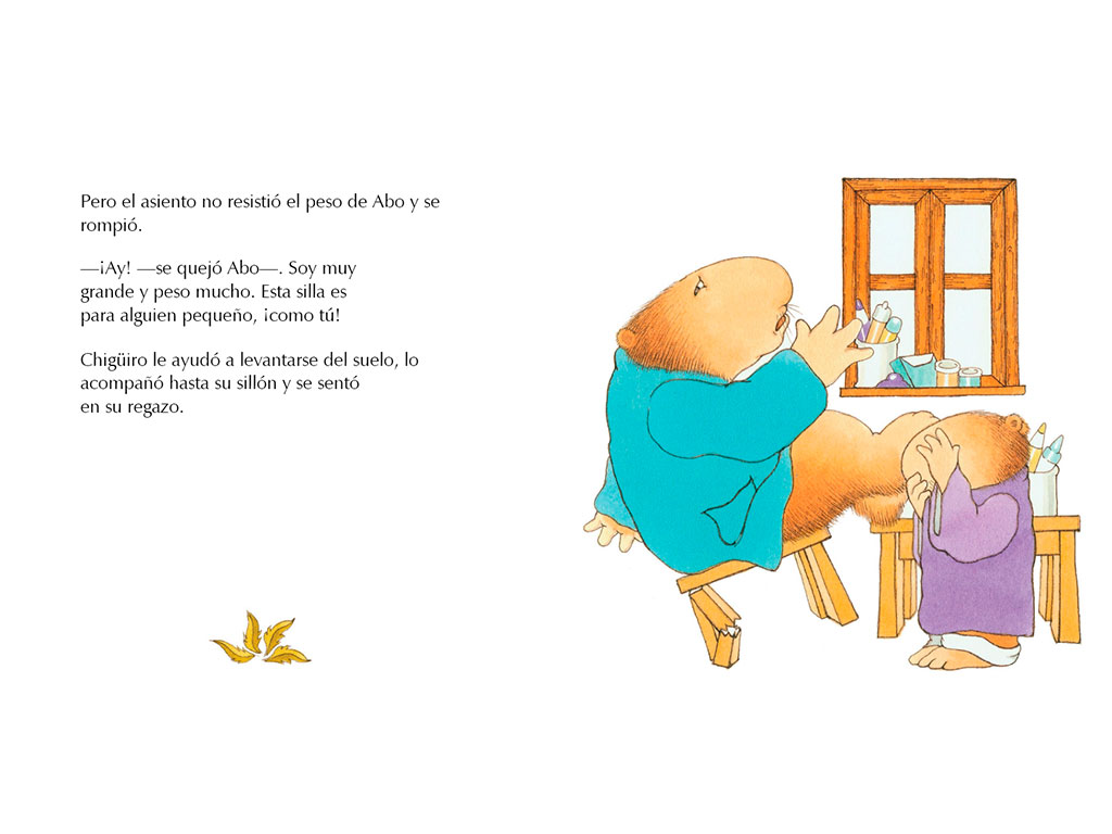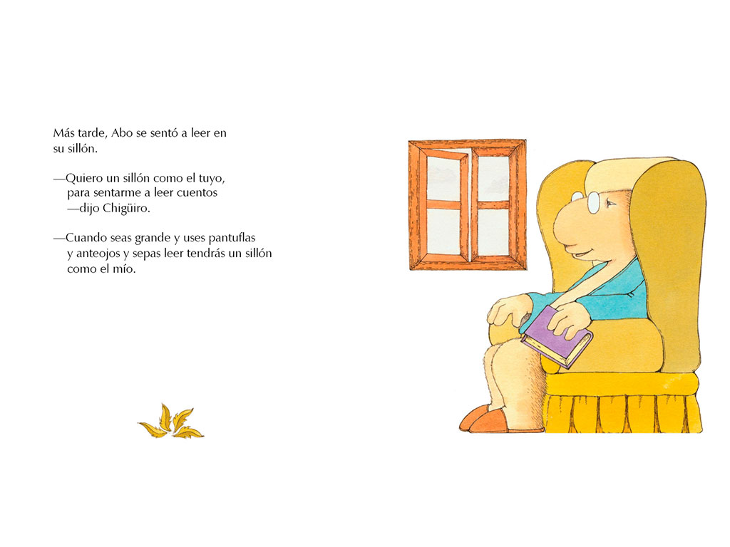 El pequeño Chigüiro quiere ser grande y hacer lo mismo que hace el abuelo. El abuelo trata de hacer las mismas cosas que le gustan a Chigüiro sin lograrlo, así Chigüiro se da cuenta de que quiere seguir siendo niño por mucho tiempo.