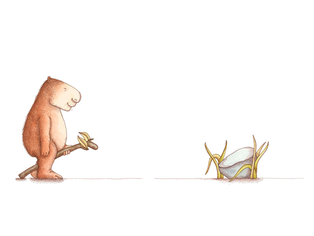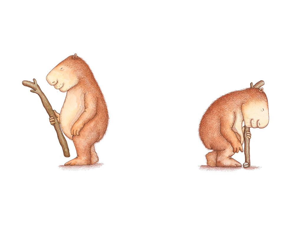 Chigüiro encuentra una ramita en el suelo, que con su imaginación e ingenio se transforma en el juguete perfecto.