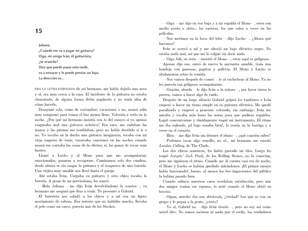 Gracias a su hermano, Juliana descubre el blues y el rock. Ella es una chica de barrio de clase media en busca de su destino; con una guitarra eléctrica atropellada, un papá ausente y una madre maravillosa que se multiplica para apoyar a sus hijos. El encuentro con Iván, otro chico que quiere formar una banda, es determinante en el sinfín de sorpresas que se avecinan.
