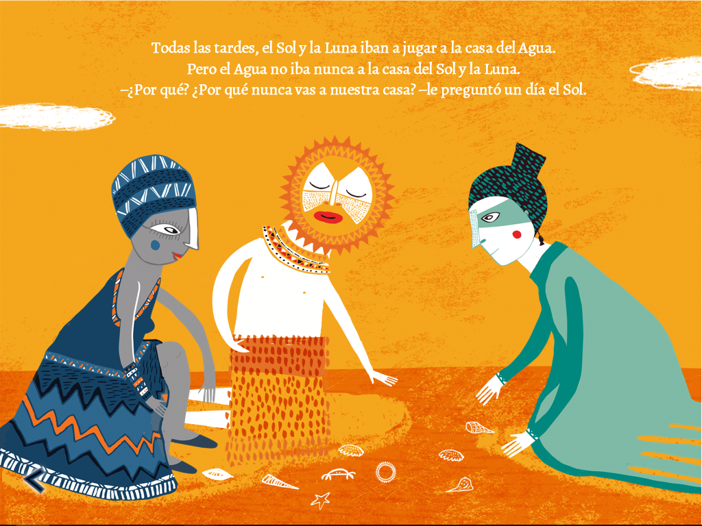 Hermosa historia basada en la tradición oral de Nigeria. El Sol invita al Agua a conocer su casa pero tendrá mucho trabajo por delante para que esto suceda. El libro contiene divertidas animaciones y música que llevará al lector a un viaje inolvidable.