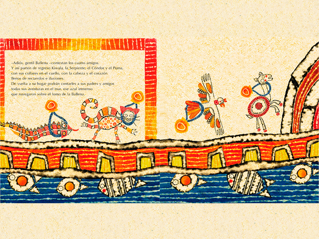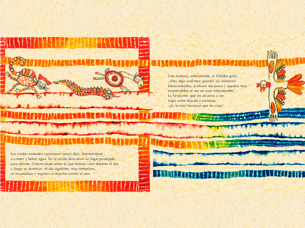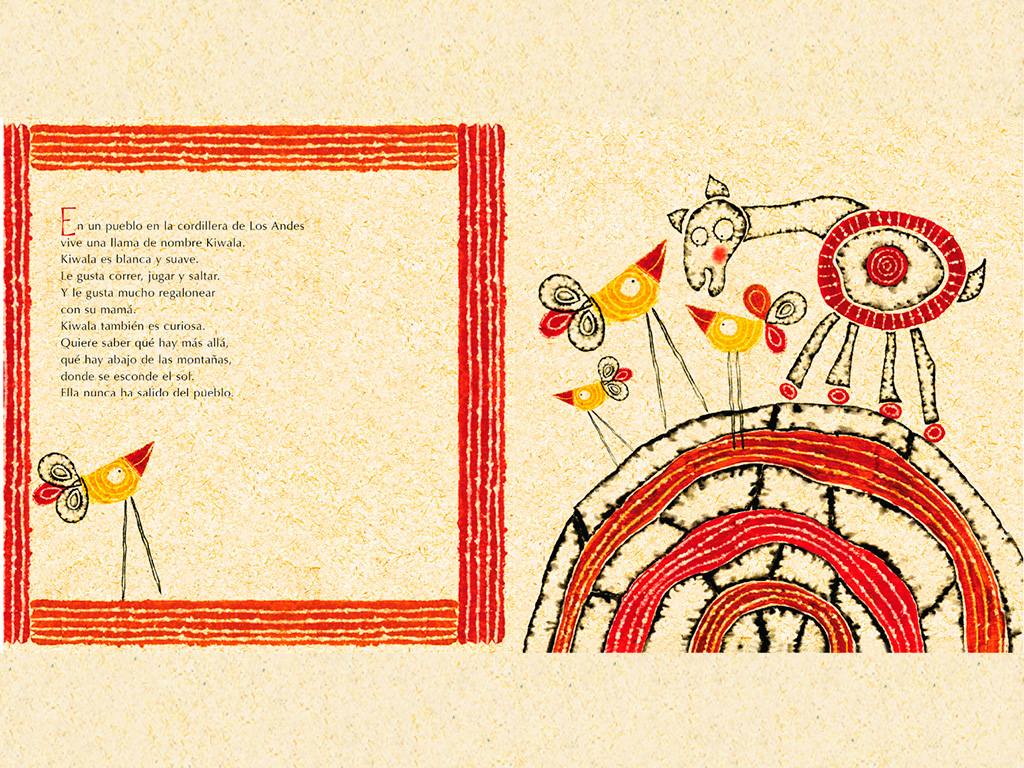 Kiwala es una llama que decide bajar desde las montañas a conocer el mar. En su camino se unen el Cóndor, el Puma y la Serpiente. La llegada al mar les causa una inmensa sorpresa. Premio de ilustración Bienal de Bratislava 2001.