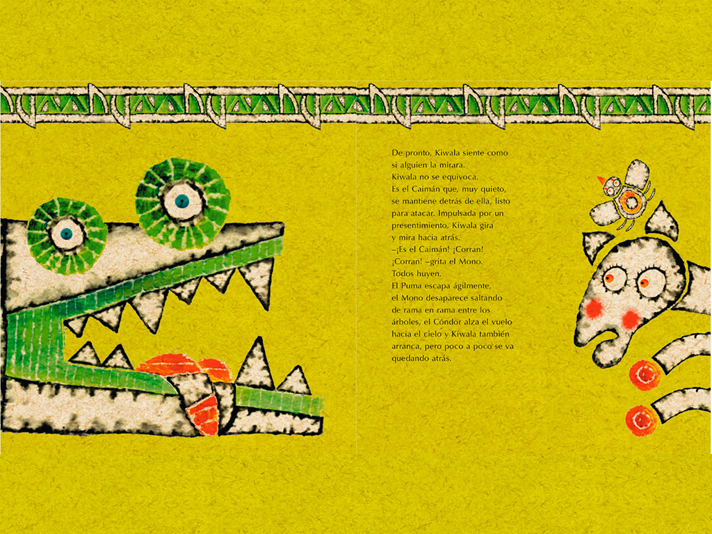 Kiwala va a la selva amazónica a buscar un antídoto para curar a la gente de su pueblo. Viaja con sus amigos Cóndor y Puma, quienes la protegen de los peligros. Allí conoce alMono, Chamán y Caimán.