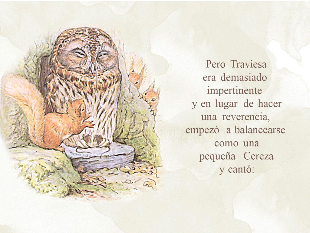 Un grupo de ardillas, entre las cuales se encuentra Traviesa, han decidido atravesar el lago que lleva hasta la isla del viejo Búho, Sr. Marrón, para buscar provisiones para el invierno. Pero mientras sus hermanas se ocupan de llevar presentes al Búho y pedir amablemente que les permita recoger nueces y otros víveres, Traviesa se las arreglará para acabar con la paciencia del viejo gruñón.
