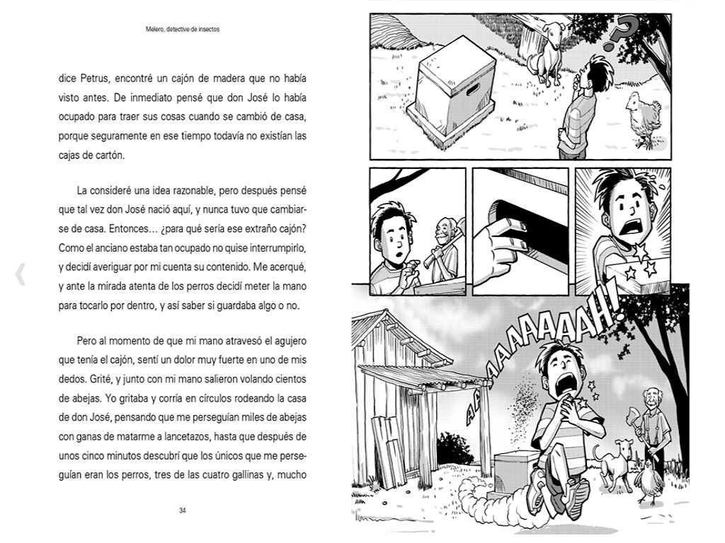 'No podía creer lo que acababa de pasar ante mis ojos. ¿Qué había sucedido exactamente entre las abejas?” Con la ayuda de don José y del gran Klaus von Petrus, Melero lleva a sus lectores a explorar las aventuras de la vida en el campo, sin imaginar que sus pasos lo pondrán tras la pista de uno de los secretos mejor guardados de la naturaleza.
