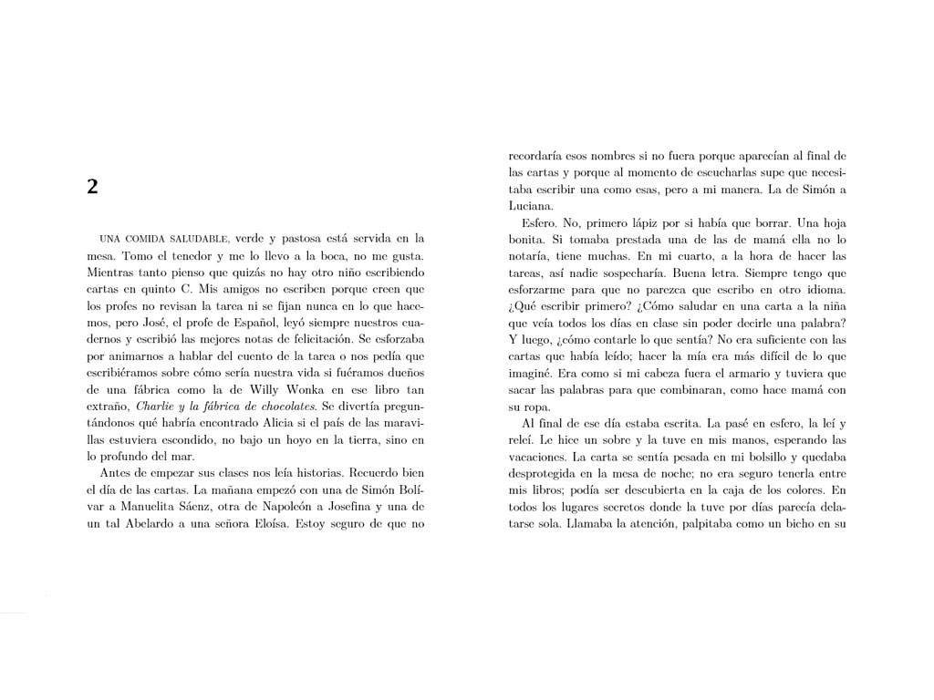 Luciana es un nombre corriente, el nombre de una niña de un barrio común. Pero para Simón Martínez, ese nombre es la suma de todo lo que tiene significado. Ante la timidez de abordarla, opta por escribirle una carta. Sin embargo, la esquela comienza un viaje por la vida de algunos de los personajes que hacen de esta historia una obra para reflexionar sobre el amor y sus posibilidades.