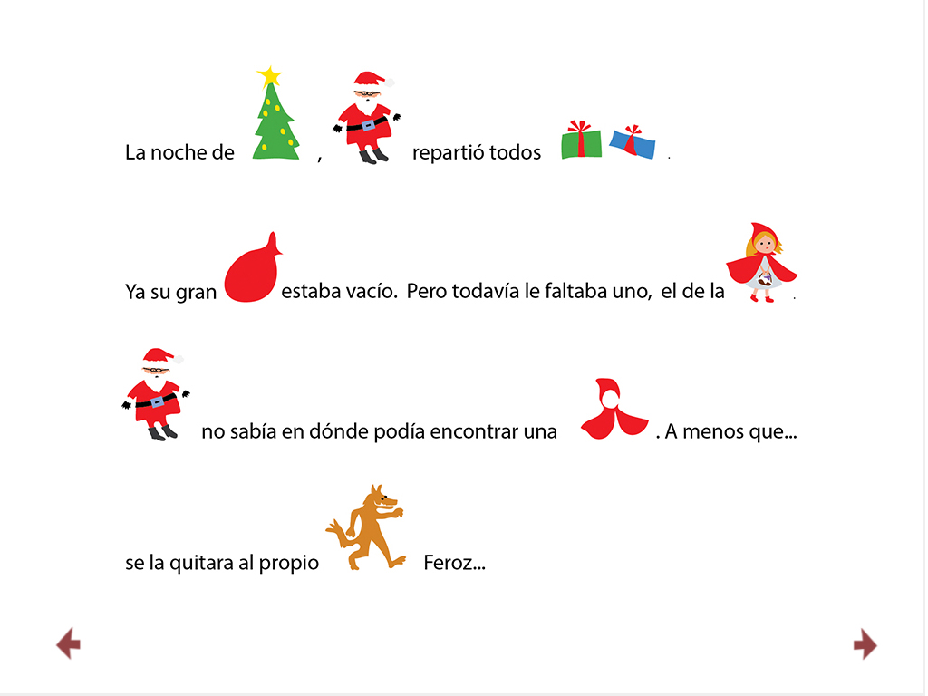Divertido relato de navidad donde las palabras y las imágenes se mezclan para contarnos una variación de la historia de Caperucita en la época navideña.