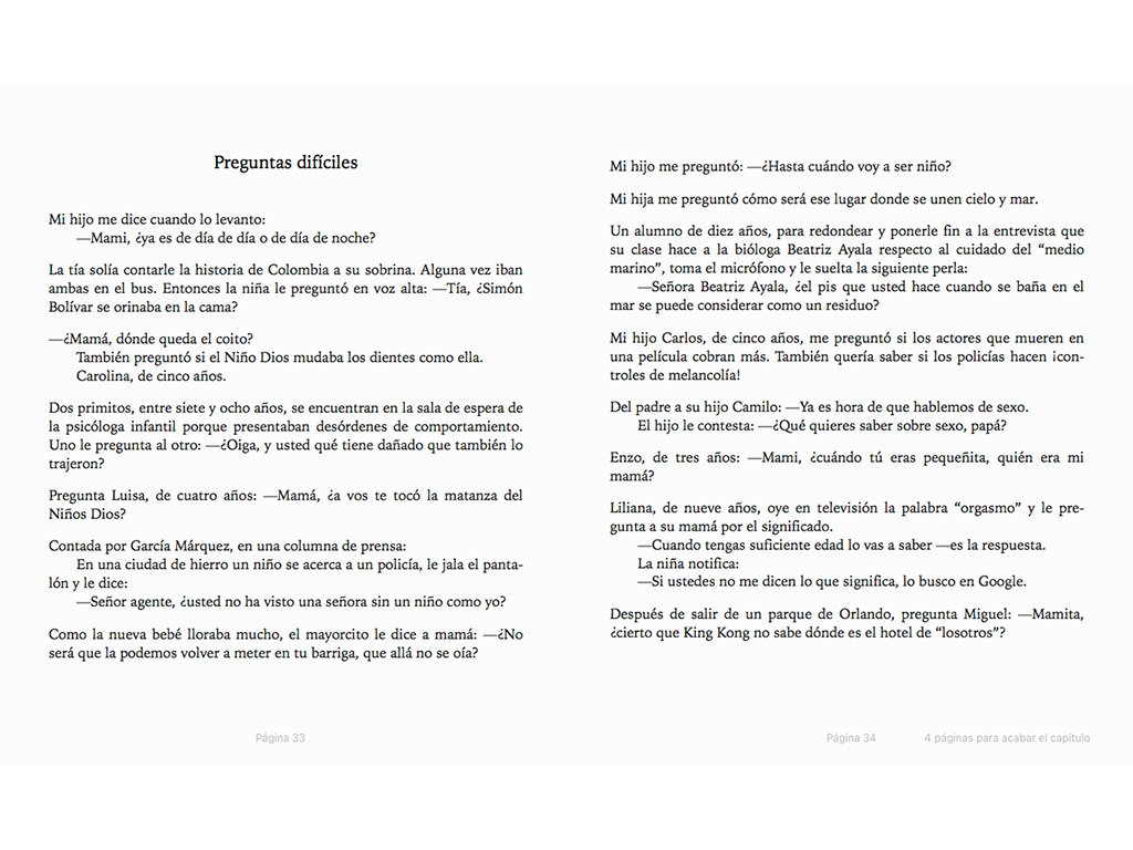 Nada más delicioso y deslumbrante, más poético y disparatado, que las cosas que dicen los niños de este libro. Podría decir que es un libro de poesía, pero no diría todo. En todo caso, el lector gozará cada frase y disfrutará de la euforia que comunican estas palabras de niños.