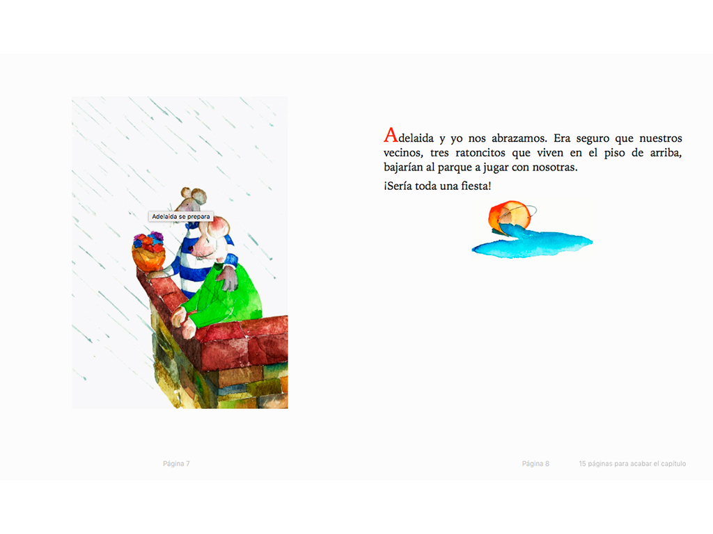 Los amigos de Adelaida, una ratona blanca, la invitan al parque a jugar con el hielo después de una granizada, pero ella toma demasiadas precauciones antes de salir. Edición bilingüe español - inglés