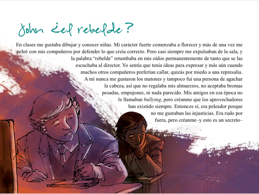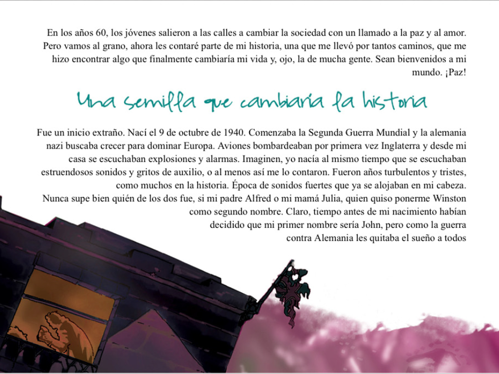 Libro ilustrado para niños y jóvenes que cuenta la vida de John Lennon, el hombre que cambia el curso normal de la música y que instala un discurso por la paz mientras lucha desde la infancia con sus propias guerras.