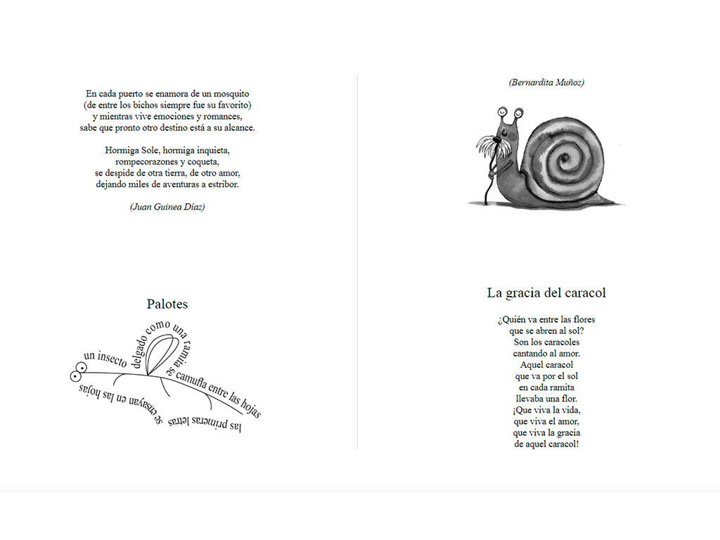 Antologia de poesía infantil que aborda la temática de animales. Están los poemas que vuelan, los que pican, los que saltan, los que conversan, los que trepan y se arrastran. Los autores y autoras son parte de la tradición literaria iberoamericanana.