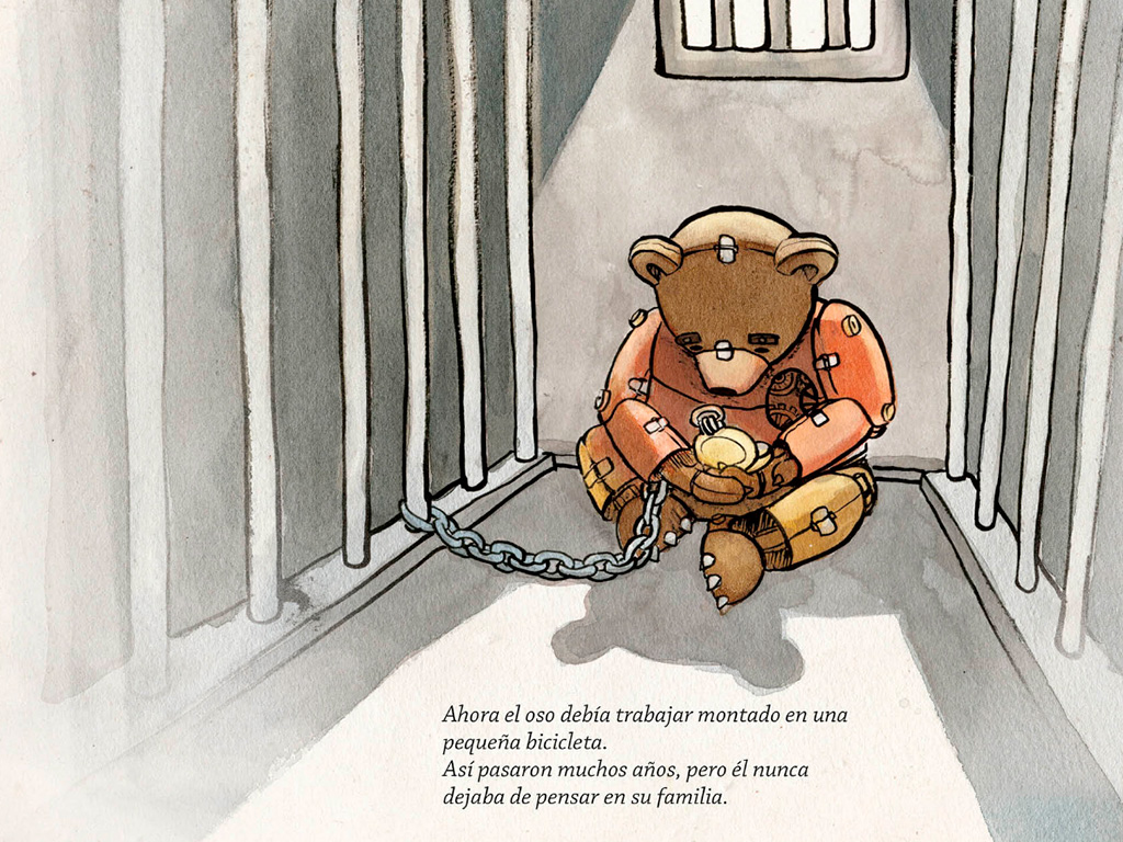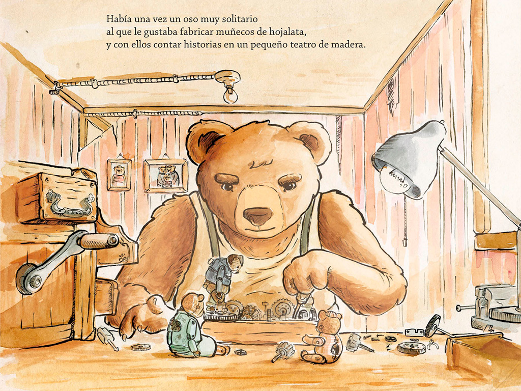 Cuento basado en el cortometraje animado ganador del Premio Oscar 2016 y que relata la emotiva historia de un oso que sale todos los días a la calle a mostrar un pequeño teatro de muñecos de hojalata. A través de ellos narra la vida de un oso que es separado de su familia y capturado para trabajar en un circo. La nostalgia y el amor por su familia lo mantienen fuerte, y siempre con la esperanza de volver a encontrarlos.