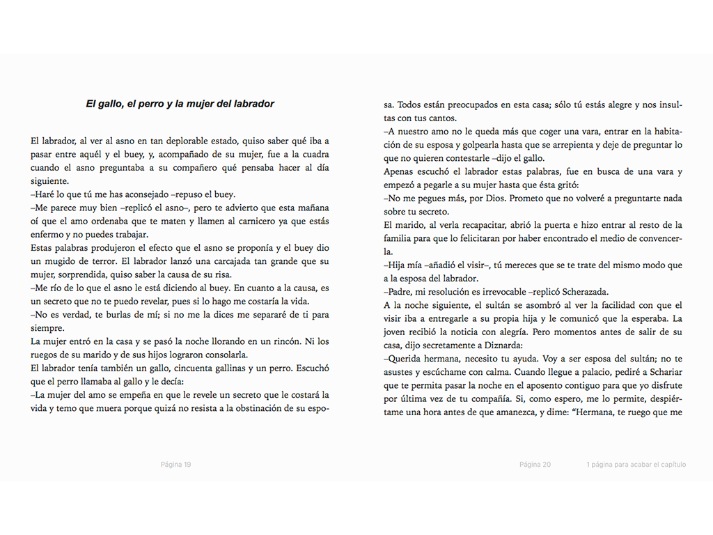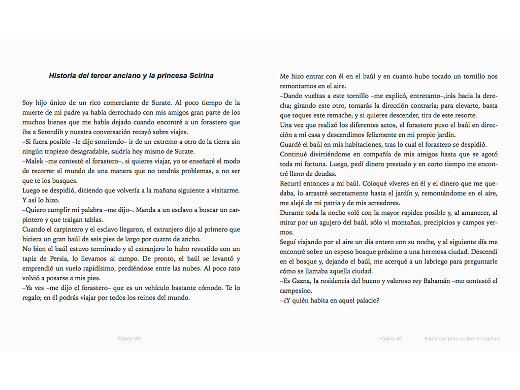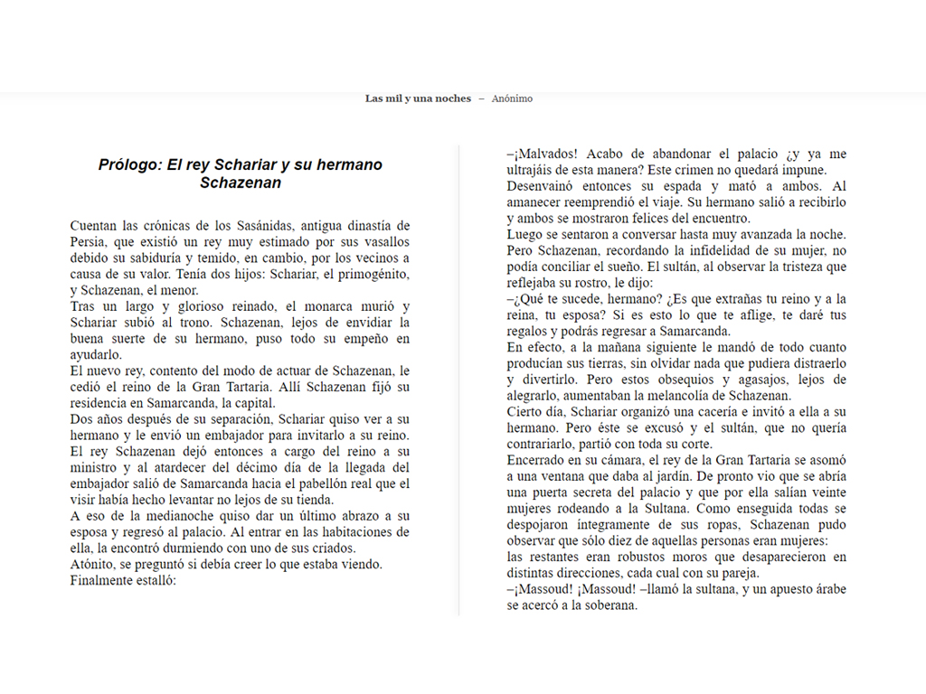 Scherezade, hija de un visir, decide evitar su muerte y planea contarle un cuento cada noche a un poderoso sultán que la tiene secuestrada. Así, nacen variadas historias como la de Simbad el marino y Alí Babá y los cuarenta ladrones.