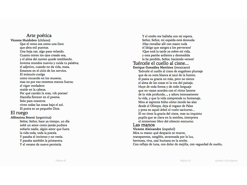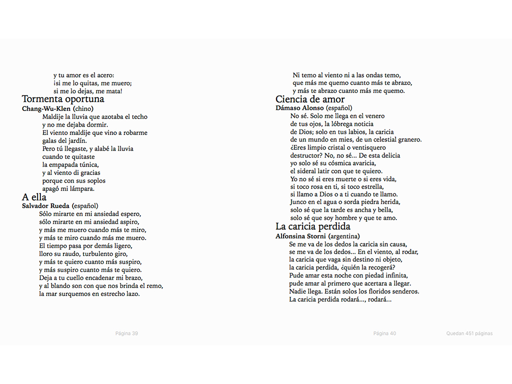 Antología que contiene los mejores y más relevantes poemas de la literatura occidental, principalmente de lengua española, organizado de acuerdo a temáticas.