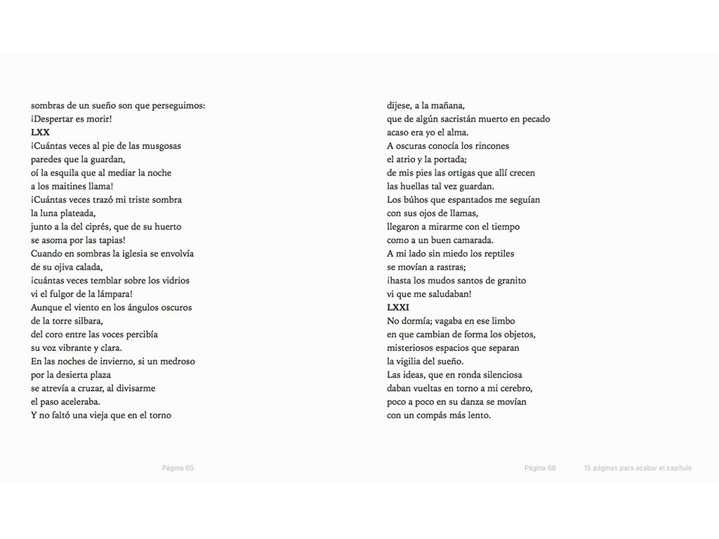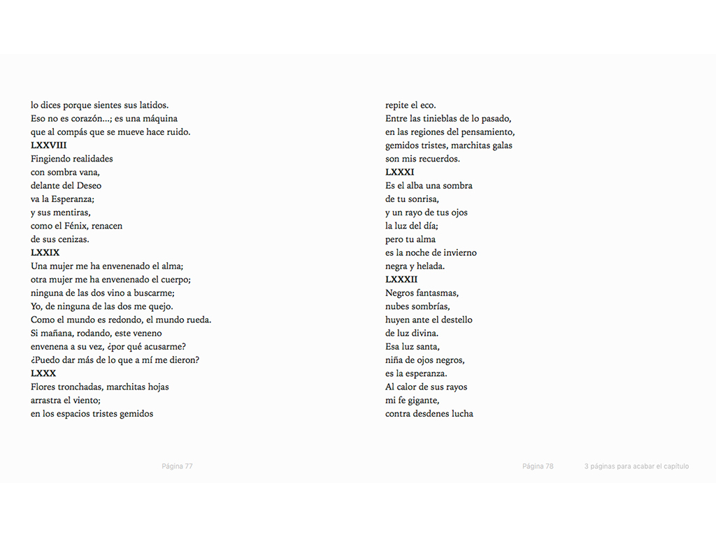 Poemas y leyendas del escritor romántico español del siglo XIX, Gustavo Adolfo Bécquer. En los poemas sobresalen temas como el amor, la esperanza, la alegría, el dolor y la soledad. Las leyendas, por su parte, son historias en prosa que narran hechos de la tradición española.
