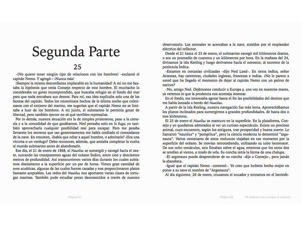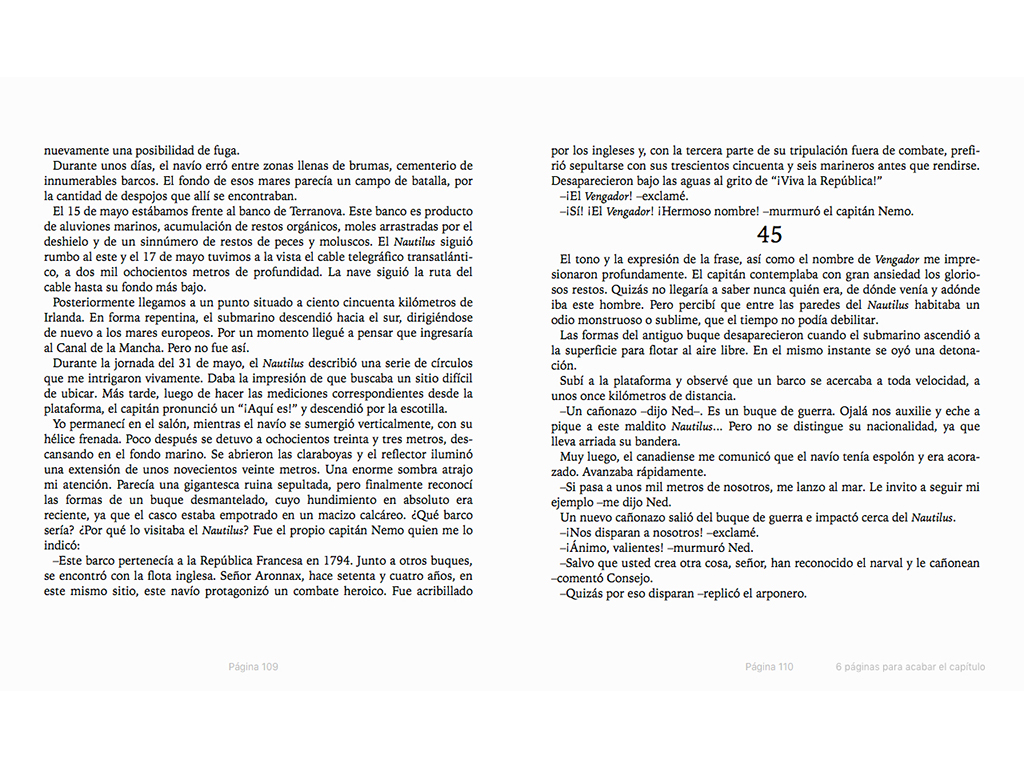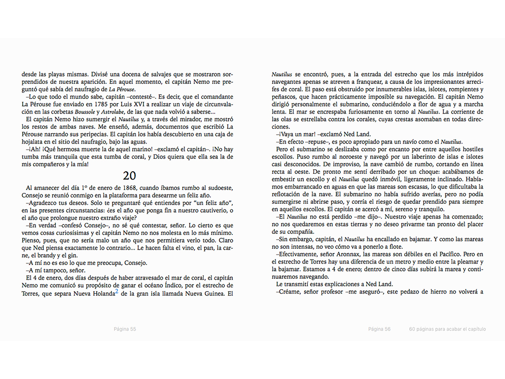 Narrada por Pedro Aronnax, un biólogo que es capturado por el Capitán Nemo después de haber naufragado, quien viaja a través del océano en el submarino Nautilus, recorriendo la Atlántida, el Mar Rojo y el Mediterráneo.