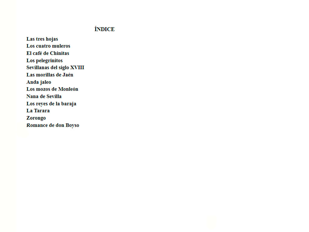 Trece cantares populares españoles recopilados por Federico García Lorca.
