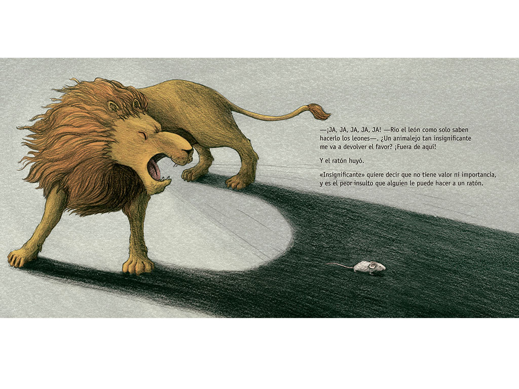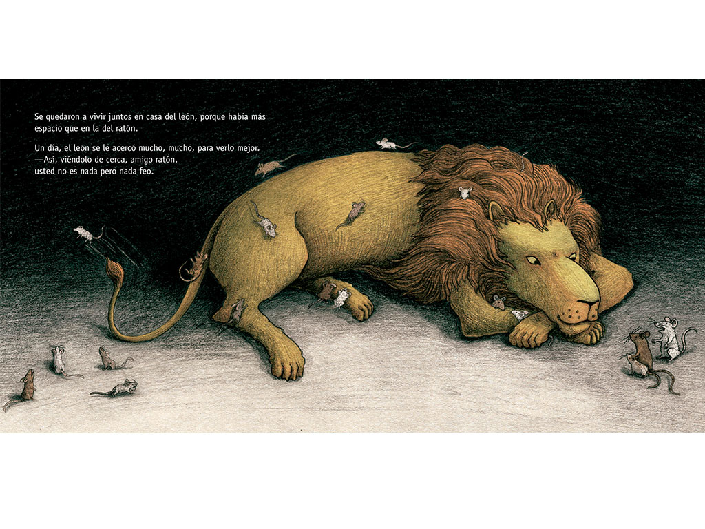 León y ratón, la clásica historia de Esopo y La Fontaine recontada con mucho humor por Jairo Buitrago y Rafael Yockteng.