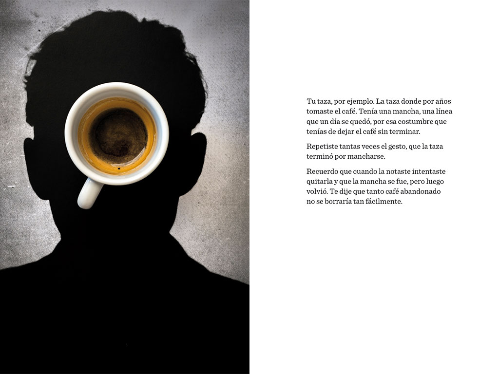 Los objetos que utilizamos cada día guardan algo de nosotros en su interior. A partir de esa premisa la escritora María José Ferrada nos propone un recorrido que comienza por una taza de café abandonada en una cocina. A medida que la lectura avanza, descubrimos que su dueño es uno de los más de 3000 chilenos que, entre 1973 y mediados de la década de los ochenta, salieron desde casas, oficinas, lugares de estudio, para nunca regresar. Un libro que nos invita a revisar nuestra historia política a partir de las pequeñas historias que quedaron inconclusas. Las imágenes de gran contenido poético, a cargo del ilustrador y diseñador español Pep Carrió, invitan al lector a una reflexión en torno a la fragilidad, la ausencia y la construcción de la memoria.