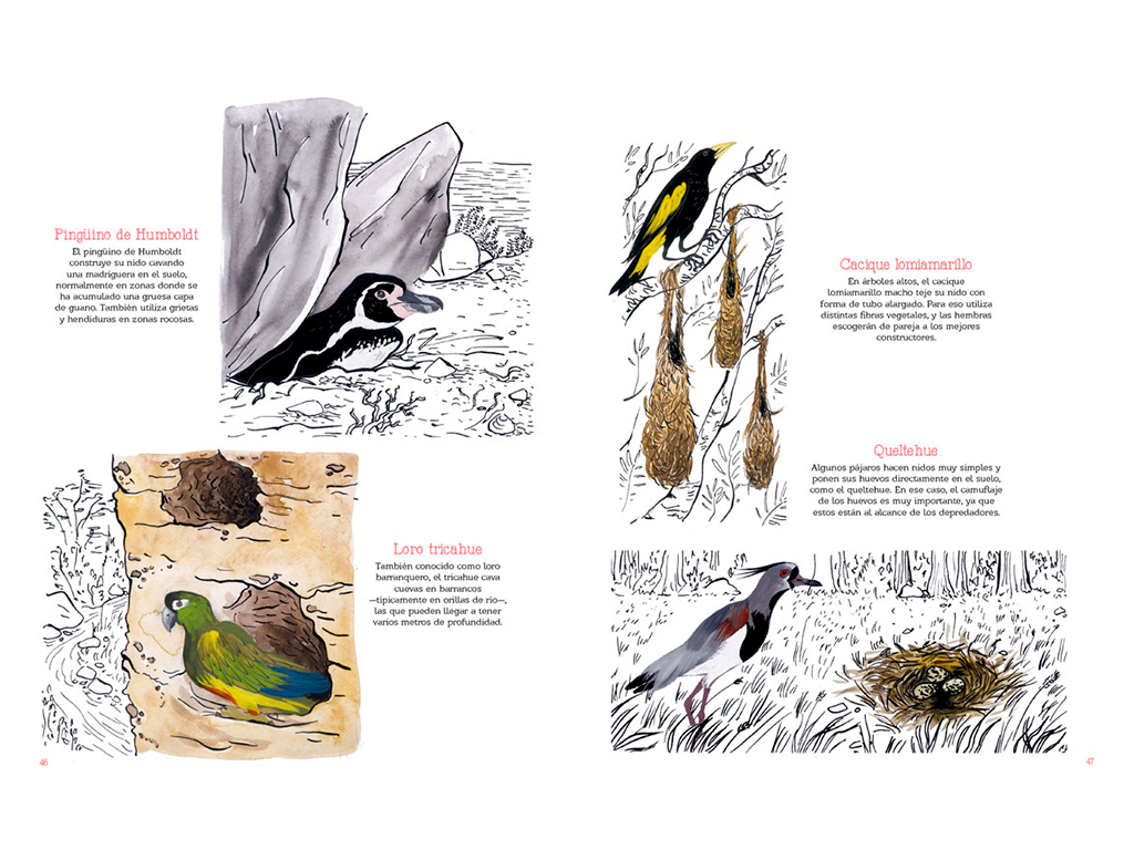 Los pájaros nos acompañan en los lugares más asombrosos del continente americano: en la profundidad de los bosques, en el hielo y frío de la Antártica, en lo más alto de una montaña y también a pasos nuestros en la plaza del barrio. Vuelo de pájaros americanos es una invitación a convertirnos en naturalistas y adentrarnos en el mundo secreto de las aves: sus plumas, el vuelo, sus antepasados, sus diferentes picos, garras y nidos. Todo esto mientras nos maravillamos con su belleza y nos vamos transformando en protectores de toda la naturaleza que nos rodea.