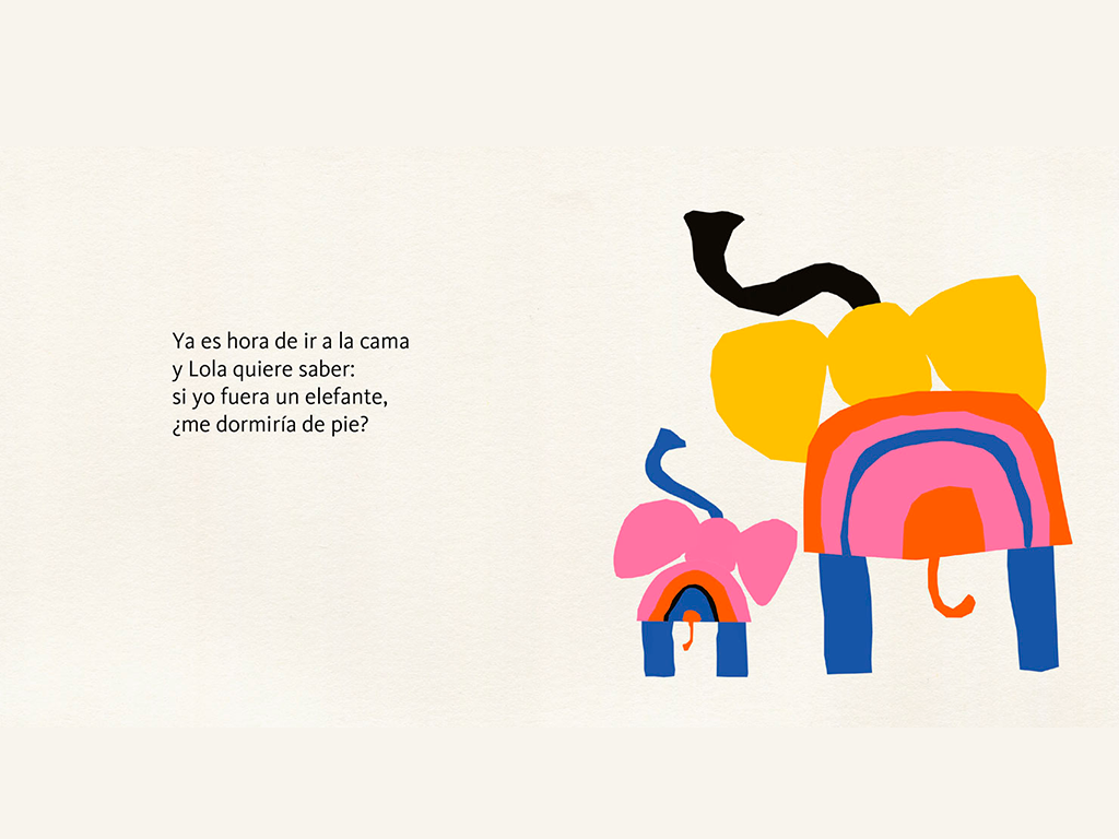 “Ya es la hora de ir a la cama y Lola quiere saber: si yo fuera un elefante ¿me dormiría de pie?” Con este comienzo el libro invita a los más pequeños a conocer las diferentes formas de dormir de varios animales. Un libro para mirar, leer y cantar.