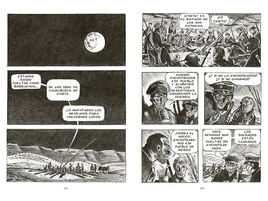Churubusco es una novela gráfica inspirada en la trágica historia del Batallón de San Patricio y su heroica deserción a favor de México en la desigual guerra contra Estados Unidos (1846-1848). Estos hechos históricos son el telón de fondo para una apasionante obra publicada por la editorial Coconino Press, en 2015.