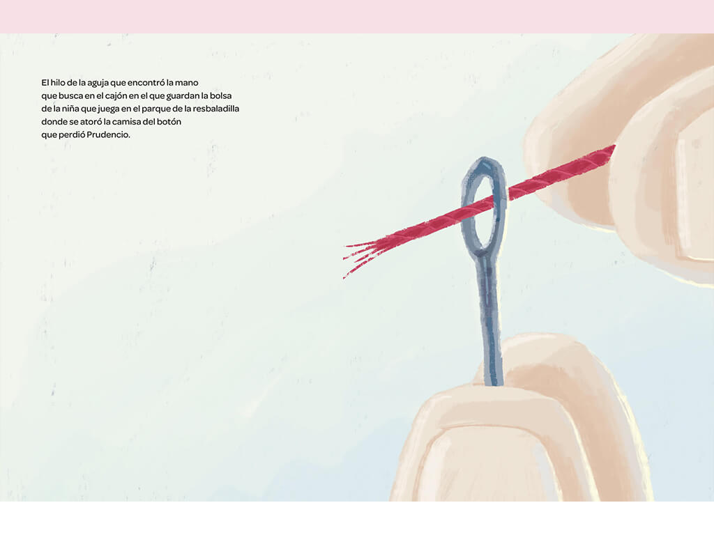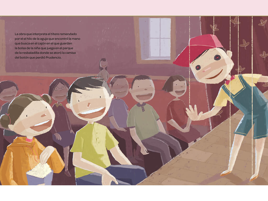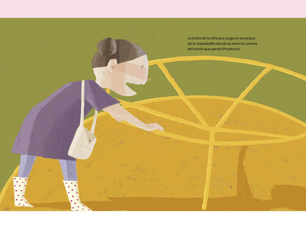 El botón de Prudencio ofrece una anécdota sencilla y un concepto visual para primeros lectores. Este libro es un juego de profundidades que nos hace viajar de manera íntima por una sola escena: un botón olvidado en un parque. La historia llevará a los niños a un recorrido rítmico desde un botón mínimo hasta la barroca danza de una marioneta.