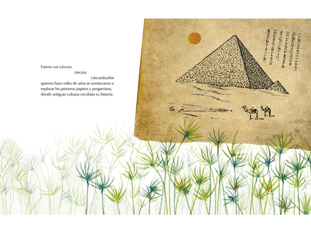 Las ilustraciones, que mezclan páginas de libros antiguos cuidadosamente escogidos en las librerías de viejo de Buenos Aires con dibujo a mano alzada y retoque digital, son obra de Marcela Calderón.
