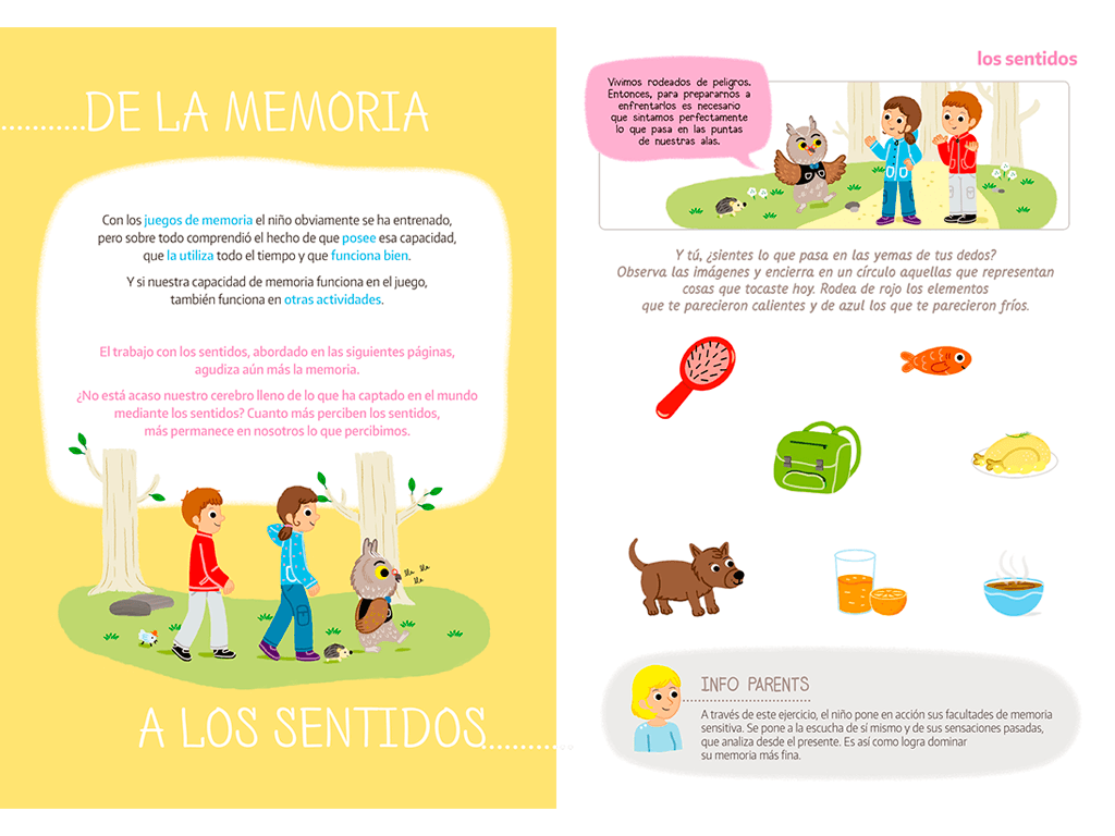 Para vivir más concentrado: estoy atento a las personas y a los animales que me rodean, tengo curiosidad por lo que sucede a mi alrededor, estoy atento a las sensaciones agradables y desagradables, siempre me tomo el tiempo para reflexionar, me intereso por lo que dicen los pequeños y los grandes, y tengo curiosidad por lo que sucede a mi alrededor. 29 actividades para lograr que su hijo viva más concentrado.