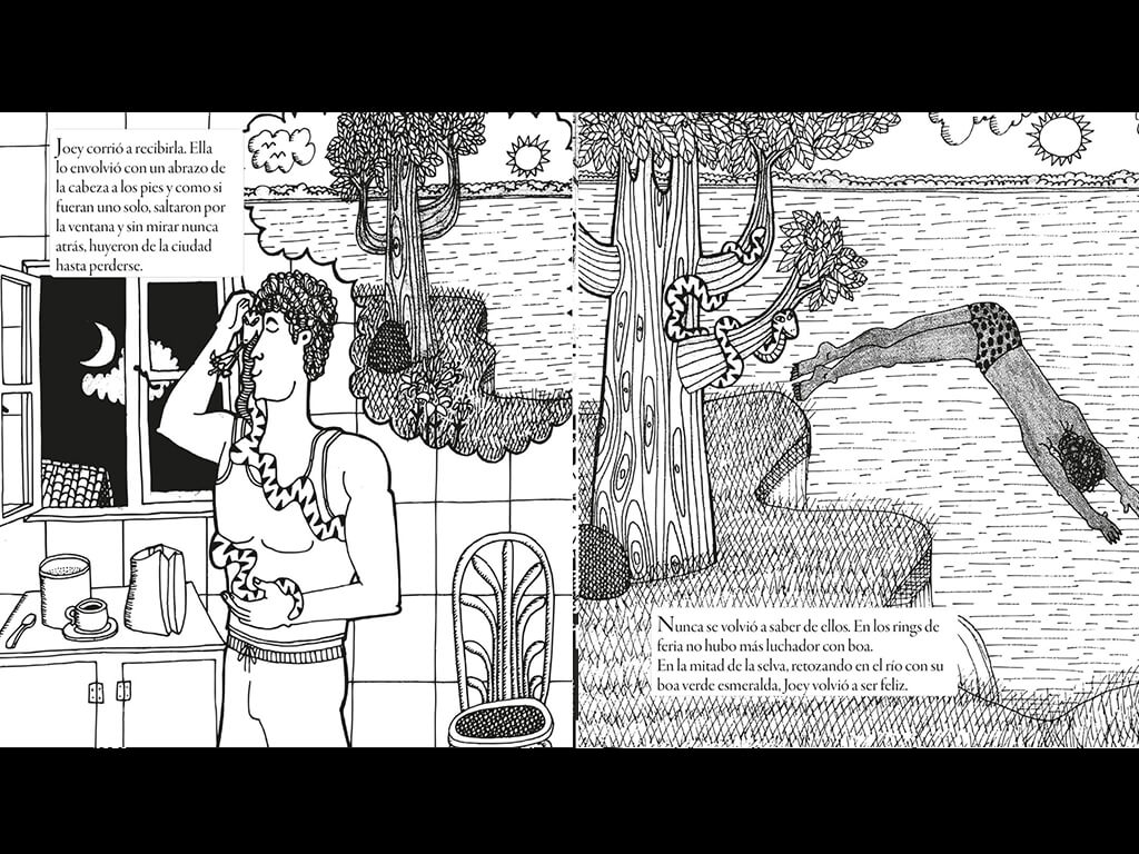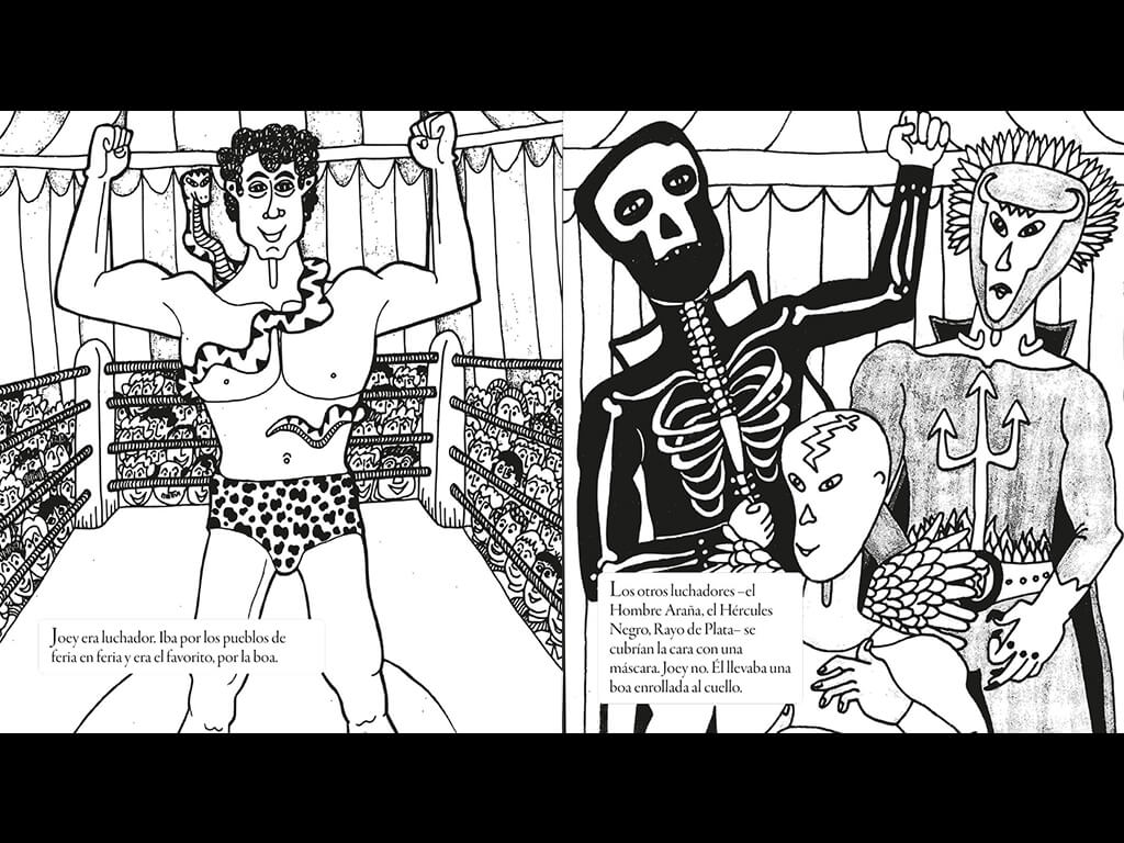 En ¡Pégale duro, Joey! , un niño y una boa crecen juntos en la selva del Amazonas. Un día viajan a conocer la ciudad donde se ven obligados a trabajar en lucha libre para subsistir. Pero se sienten solos y tristes en ese ambiente. La selva los llama.