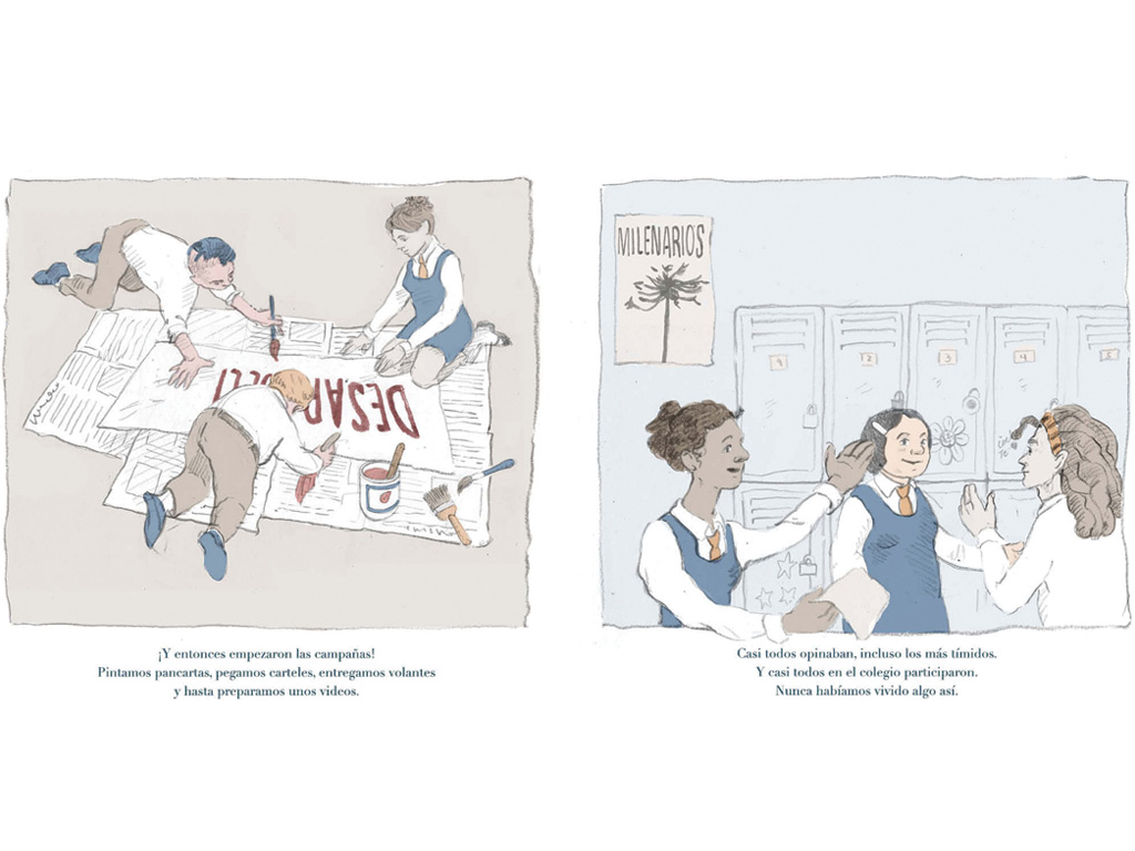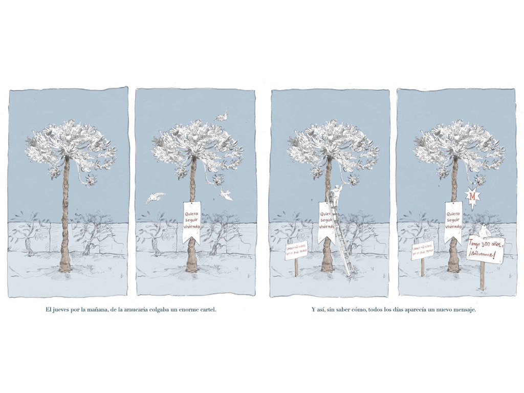 Con una grúa y una araucaria comienza la historia de una controversia en un pequeño colegio. Los de un lado creen tener la razón; pero los del otro también. ¿Cómo resolver el conflicto? Cuando hay posiciones enfrentadas, no es fácil ponerse de acuerdo. Un libro que recoge conceptos fundamentales para entender nuestra sociedad: democracia, participación, ciudadanía.