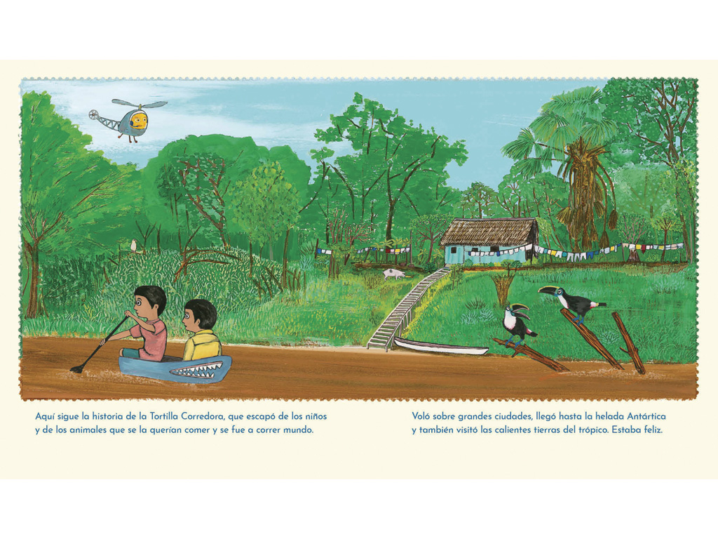Tras arrancar de los niños y los animales que se la querían comer, la Tortilla Corredora viajó por el mundo: pasó por la Antártica y también por selvas tropicales. Piloteando su helicóptero, voló sobre ciudades, montanas, bosques y mares, y ahora está de vuelta en su tierra. Pero su aventura está lejos de terminar: todavía debe enfrentar emocionantes desafiís y conocer a alguien muy especial.
