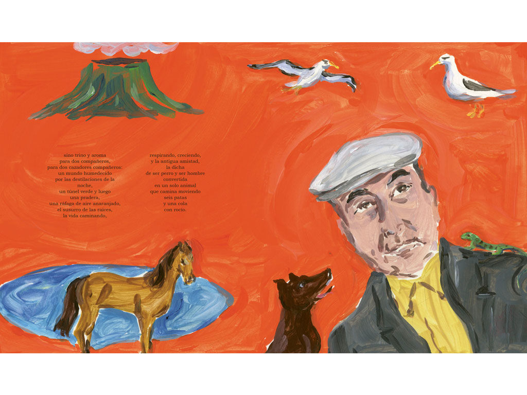 Acaso tengan los niños de hoy espacios para el retozo, quisiera esta antología de poemas de Neruda devenir juguete y no sólo lectura; sembrar en el aprendiz de la lengua la inquietud por la poesía — que es la inquietud por la belleza—, lúdico ejercicio de la palabra que la remota a su primigenia función: habitar el mundo.