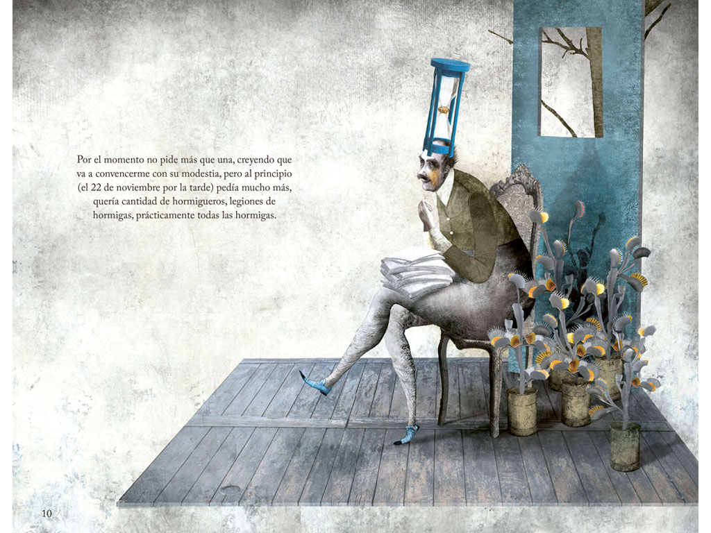 El señor Silicoso esta completamente loco si se imagina que voy a darle una hormiga. Así comienza este texto surrealista, con la cuota justa de absurdo y poesía, tan propias del escritor argentino. Por su parte, Gabriel Pacheco aporta la atmósfera transformándolo en un imperdible.