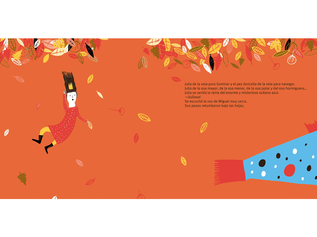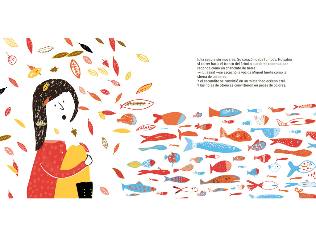 Un día de otoño, Julia y Miguel salen a jugar a la escondida. El escondite que encuentra Julia, zambulléndose en un cerro de hojas secas, es tan profundo y misterioso que encuentra sorpresas fantásticas que no podrás creer.