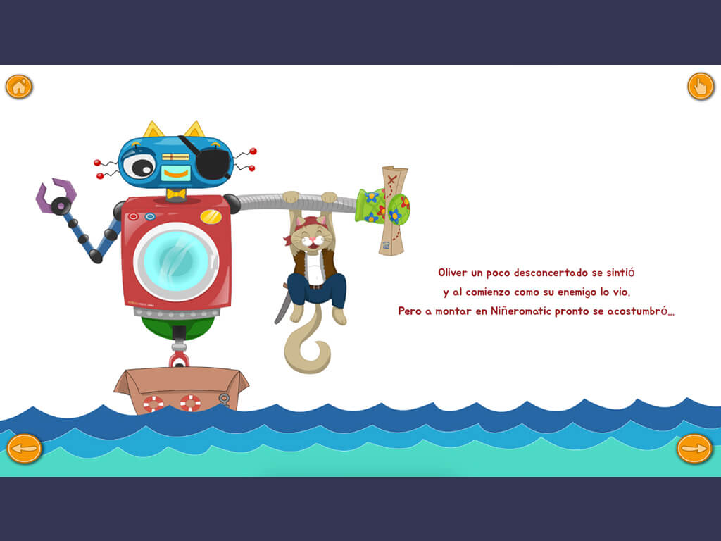Oliver es un cachorrito gatuno que quiere estar subido en sus padres-gato día y noche. Buscando un poco de ayuda, un día papá-gato construye un ingenioso invento llamado Niñeromatic, y este les cambiará la vida a todos. Una historia sobre el valor de la independencia, la creatividad, la autoconfianza y el juego libre.