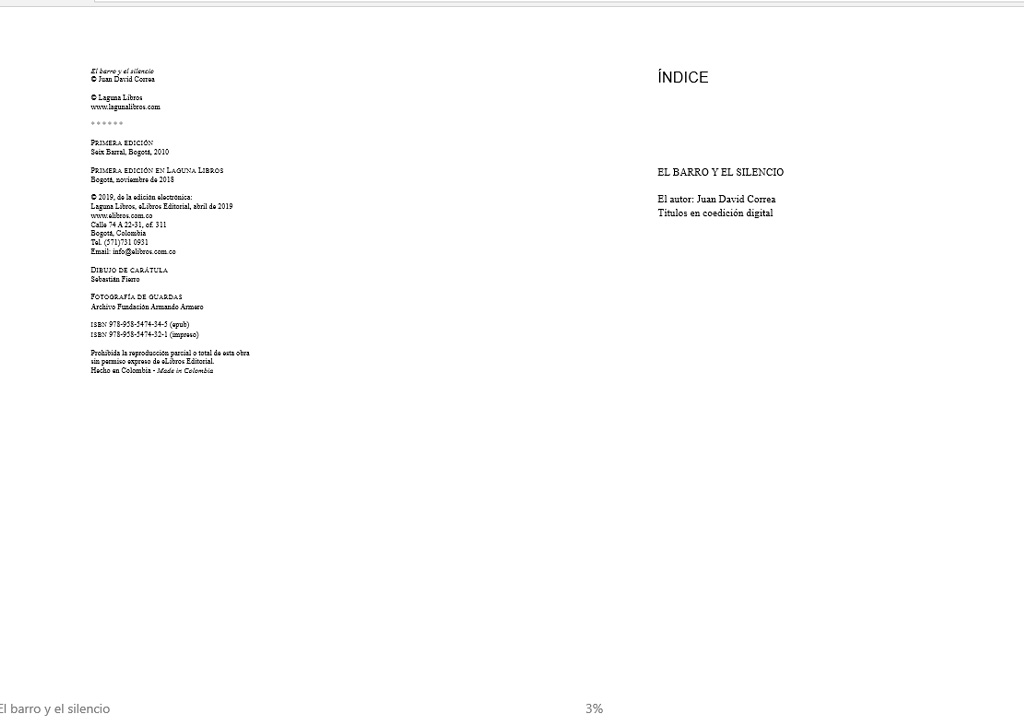 En esta crónica, Juan David Correa recuerda a sus abuelos que vivieron en Armero hasta el 13 de noviembre de 1985, cuando una avalancha de barro sepultó el pueblo. Pasados más de treinta años, reconstruye la historia de una familia y un territorio afectados por la dolorosa convergencia de las fuerzas naturales y un gobierno negligente. Este es un intento por entender y una reflexión sobre cómo narrar la tragedia. Es también una invitación a escuchar estas voces para salvarlas del olvido.