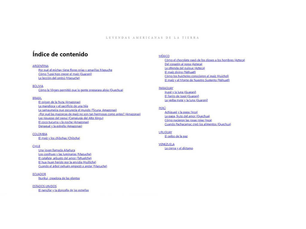 Este libro valora las raíces del continente, es una suerte de memorial de los pueblos antiguos y el legado que dejaron a los descendientes americanos. Estas leyendas destacan la flora que rodeó a pueblos como los aztecas, mapuches, ticunas, quechuas, entre otros.