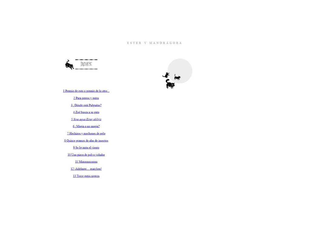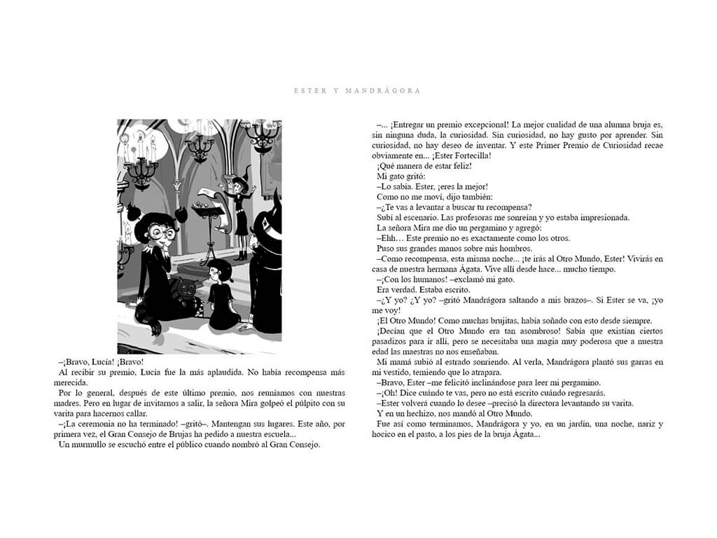 Ester acaba de terminar el primer año de la Escuela de Brujas, y ha ganado el Premio a la Curiosidad. Este es un premio especial, pues le permite a ella y a su gato Mandrágora visitar el mundo de los humanos. Pero tiene prohibido hacer magia en frente de ellos... ¿logrará pasar desapercibida?