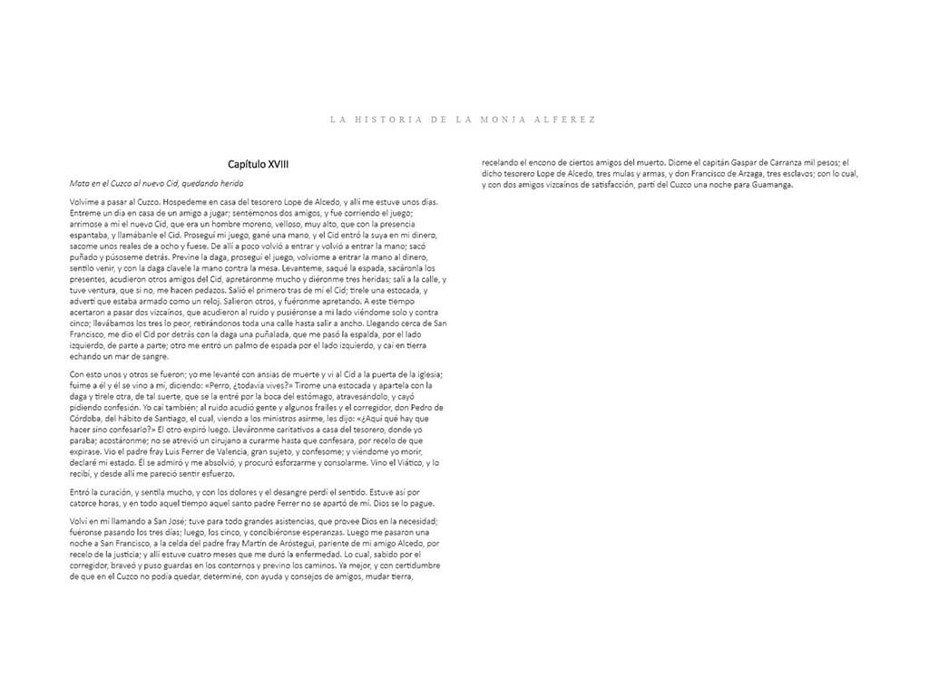 Narra las memorias de Catalina de Erauso, monja española que disfrazada de militar participa de las hazañas guerreras ocurridas durante la conquista de América.