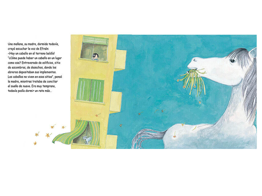 En un terreno abandonado de la ciudad aparece un caballo de color plata. ¿Cómo había llegado a ese lugar? Efraín no se hizo nunca tal pregunta. Había aparecido entre ellos y eso era suficiente… Una emocionante historia para todos aquellos que aman los caballos y desean ver su sueño convertido en realidad