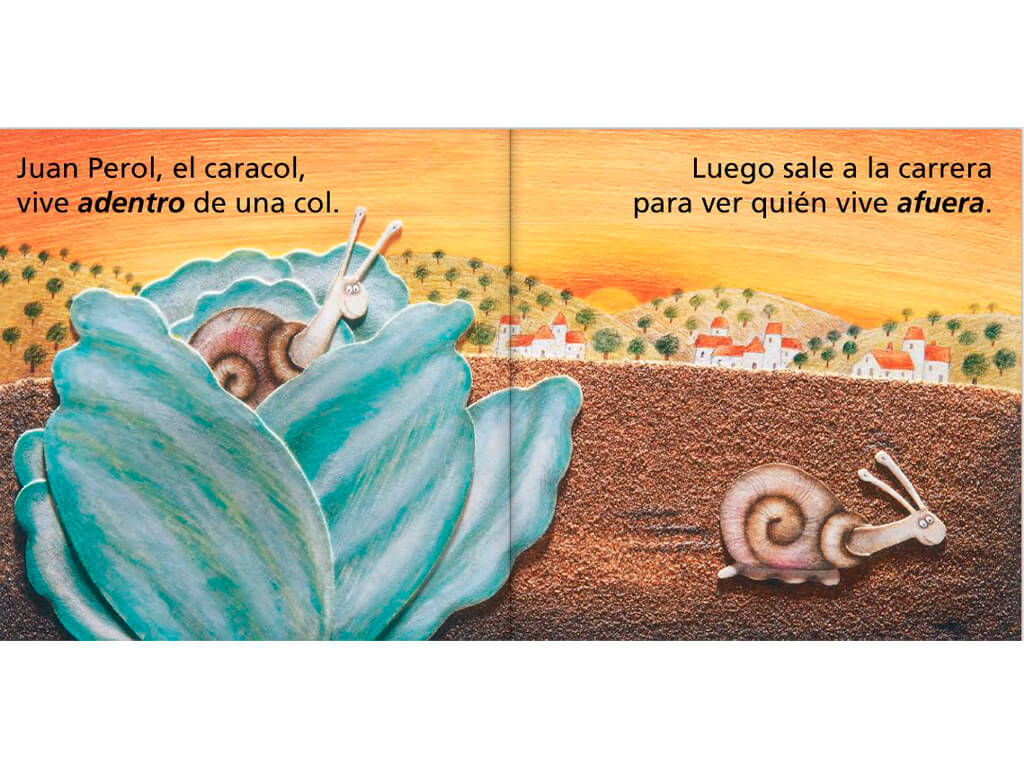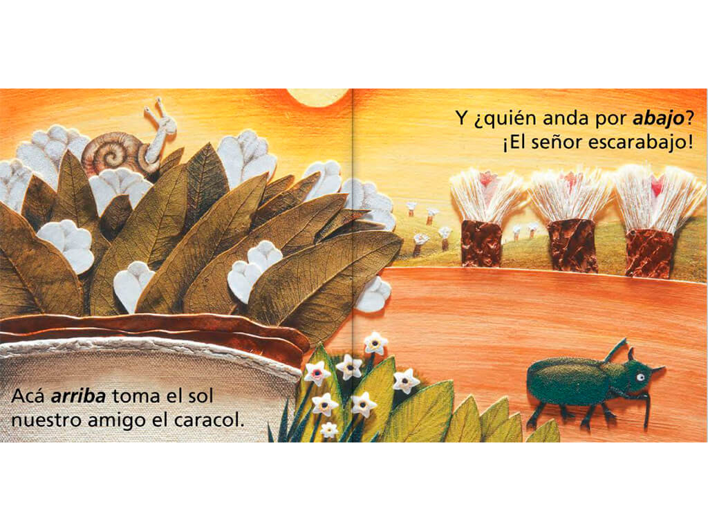 Libro para que los niños más pequeños conozcan las nociones espaciales: adentro-afuera, adelante-atrás, arriba-abajo, etc., a través de imágenes a color y sencillos textos rimados de Alonso Núñez.