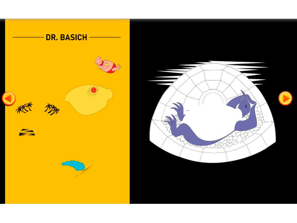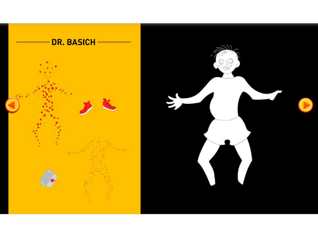 El doctor Basich presenta las radiografías de los personajes que visitan su consultorio, a quienes diagnostica y receta con profesionalismo y sentido del humor.