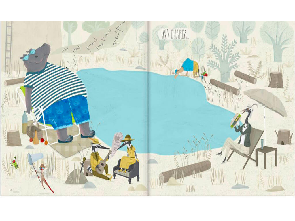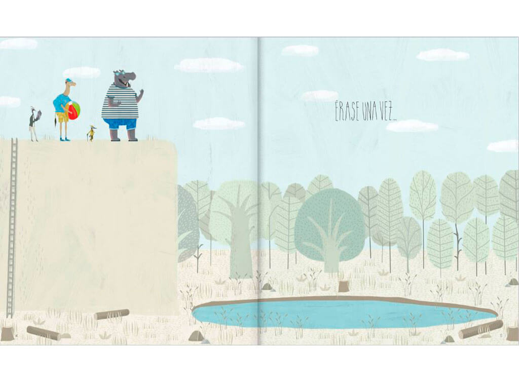La pequeña charca donde todos los animales chapotean las tardes de calor se ha vaciado. Hipopótamo, que se zambulle casi sin mirar, termina bañado en barro y magullones. ¿Qué ha sucedido? El gorila no lo duda e interroga a los presentes: Libélula, Mosquito, Garza, Camello urden sus pequeñas mentiras… ¿Cuál será la verdad? Una historia de misterio y humor para niños que empiezan a leer.