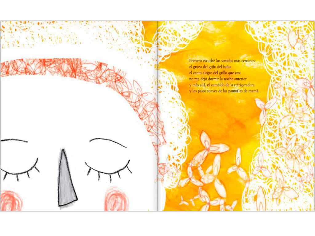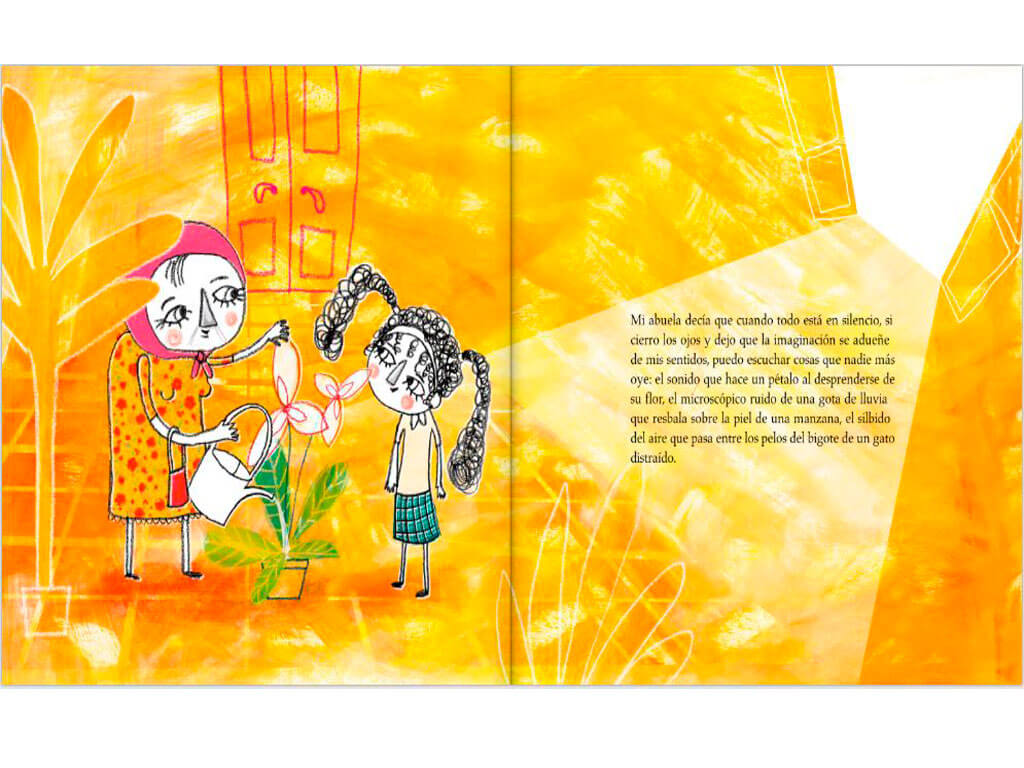 Siguiendo las instrucciones de su abuela, Amanda aprendió a viajar con los oídos. En su recorrido por la ciudad, se hace amiga de Miguel, un niño que toca la marimba mientras espera que le pongan un corazón nuevo.