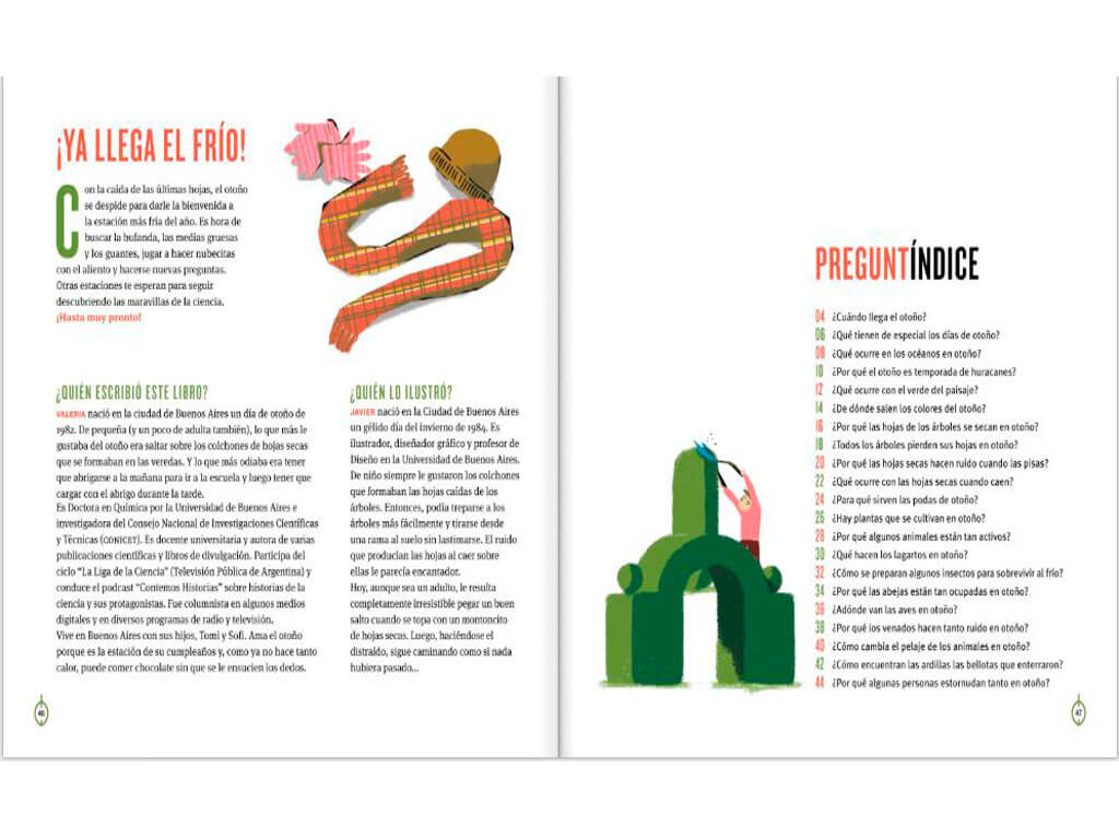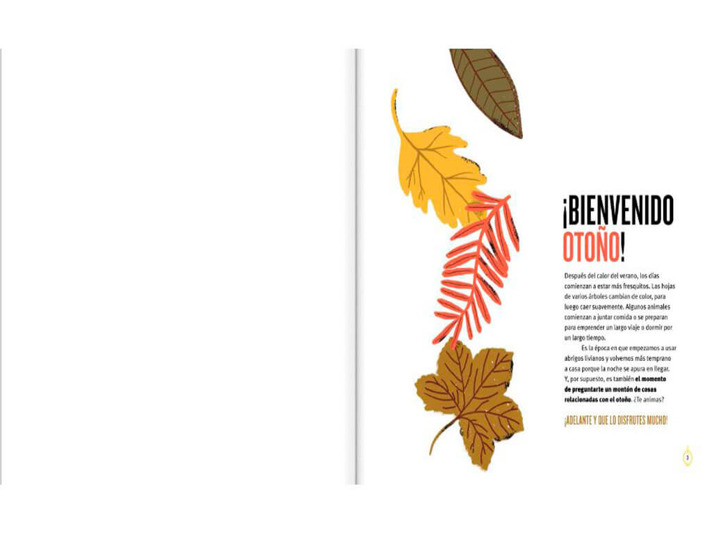 ¿Qué tienen de especial los días de otoño? ¿De dónde salen esos bellos colores? ¿Qué hacen los insectos en otoño? ¿Por qué las hojas secas hacen ruido? Un libro que da respuesta a muchas de las preguntas que trae el otoño y cuenta cosas muy interesantes y curiosas relacionadas con los árboles, los animales, el clima y mucho más.