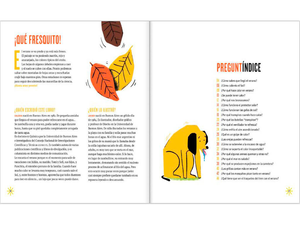 ¿Cómo funciona el protector solar? ¿Por qué transpiras cuando hace calor? ¿Por qué el ventilador te refresca? ¿Por qué los mosquitos pican tanto en verano? Un libro que da respuesta a muchas de las preguntas que trae la estación más caliente del año y cuenta cosas muy interesantes y curiosas relacionadas con el calor y el verano.