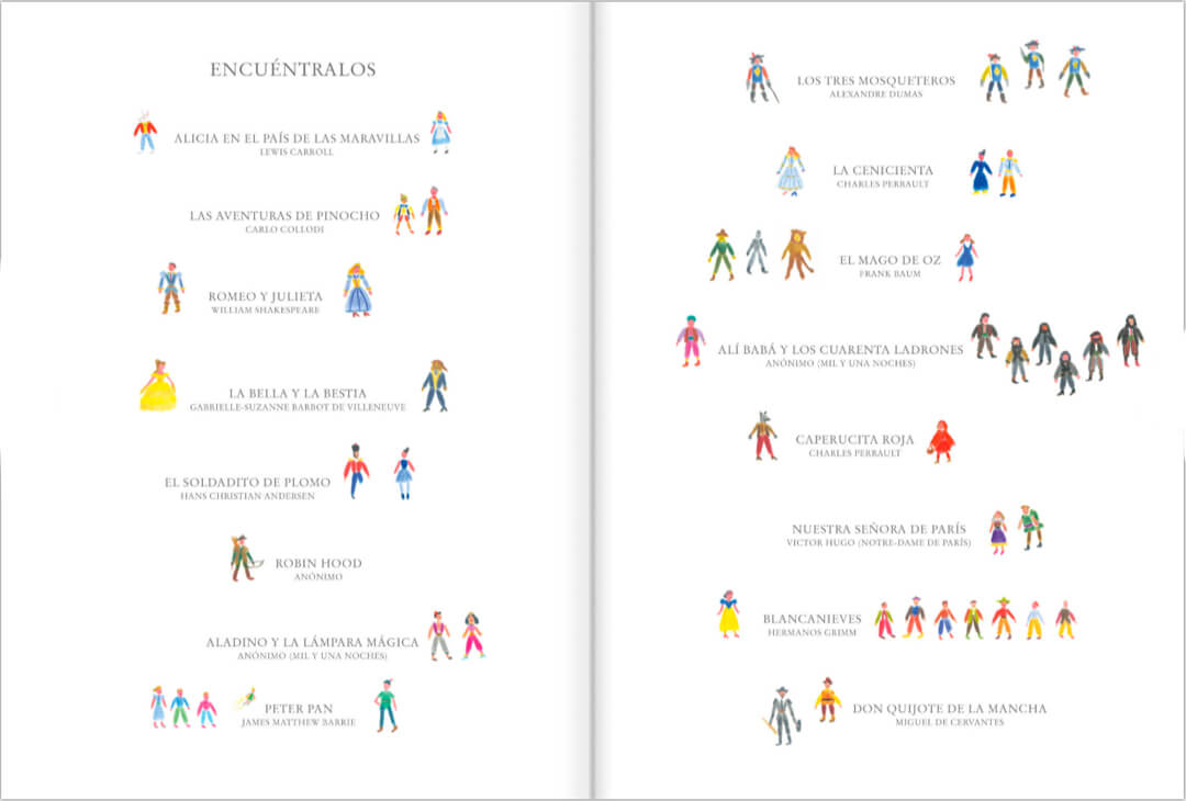 Una selección de cuentos clásicos que nos encantan desde siempre: Robin Hood, Alicia, Blanca Nieves, el queridísimo Don Quijote, entre otros. Este, el primer libro ilustrado de Matías Prado, invita no solo a leer, sino también a descubrir entre los miles de personajes, la historia de sus protagonistas. Un libro infantil en el que el arte y la literatura van de la mano.