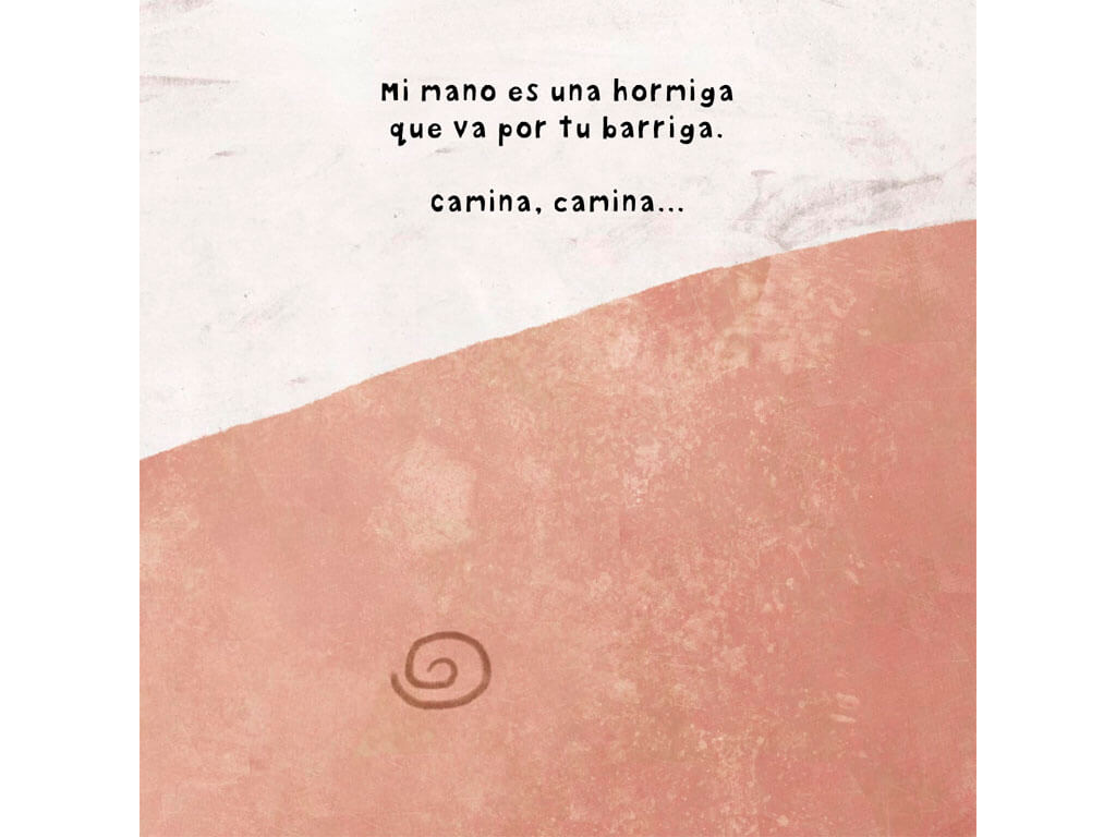Este libro recrea el juego de hacer pases con la mano sobre el cuerpo del bebé: mitad caricia, mitad fiesta, mitad suspenso, mitad cosquillas. Es un juego de reconocimiento del propio cuerpo, y también de los bichos que se van nombrando. Las ilustraciones cercanas permiten a los niños que se identifiquen con las imágenes y que reconozcan los insectos de su ambiente cotidiano.