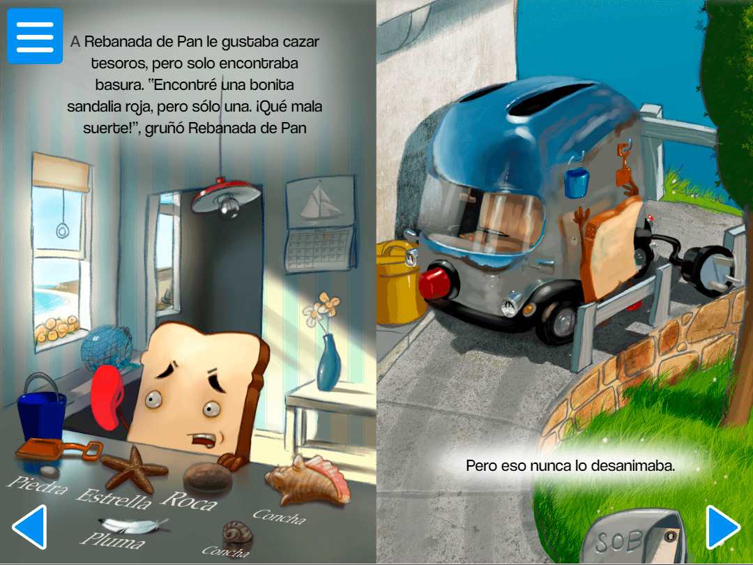 A Rebanada de Pan le gusta buscar tesoros, aunque solo ha encontrado basura. Y cuando por fin encontró una bonita sandalia, no encontró su par. ¡Qué mala suerte! Por eso va a ir a la playa para encontrar su pareja. ¿Crees que la encontrará?