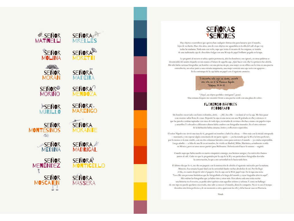 La autora de este libro encontró de manera misteriosa las fotografías que ahora salen a la luz. Las misteriosas fotografías fueron captadas supuestamente por Florencio Nápoles; insólitas imágenes de curiosos personajes son reveladas y explicadas a detalle. No es del todo claro si el fotógrafo buscaba especiales cualidades en las personas, o si las cualidades aparecían espontáneamente al momento de retratar a estas casi locas, a estos muy extraños, señoras y señores…